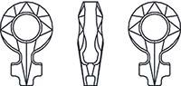 Фольгированные ювелирные камни Swarovski в форме женского символа. Эти кристаллы используют для создания украшений в технике сутажной вышивки, при работе с полимерной глиной или мастикой Ceralun. Вклеивают в изделия из кожи и дерева, оправляют в серебро и другие металлы. Оплетают бисером и используют для вышивания вместе с нитями, бусинами и стразами других разновидностей.