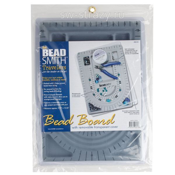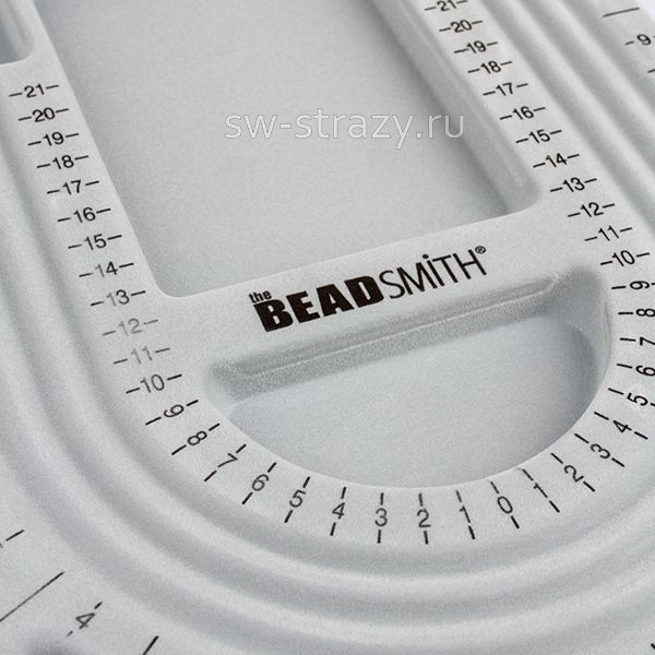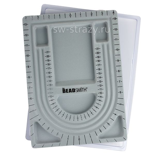 Его флоковое, "бархатистое", покрытие не даст бусинам перекатываться. А разметка с измерениями как в дюймах, так и в сантиметрах, поможет точно подобрать порядок бусин с учетом длины готового украшения.