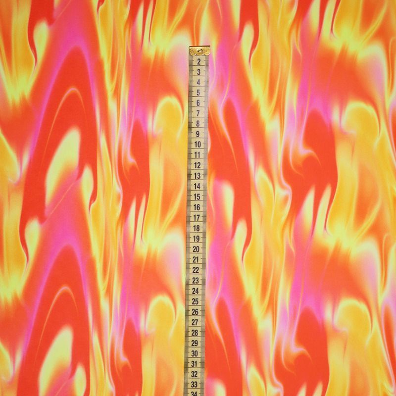 Эта ткань создана для тех, кто знает цену движению. Высокая плотность полотна, эластичность во всех направлениях, мягкость и упругая структура — всё это делает трикотажное полотно на основе полиэстера и эластана настоящей находкой для пошива купальников, костюмов, леггинсов, а иногда и цельных сценических нарядов. Благодаря сочетанию плотной посадки и ярких принтов ткань не просвечивает, даже в растянутом виде, оставаясь визуально целостной. Это особенно важно при работе с крупными узорами, клеткой, полосками и абстрактными мотивами, где требуется чёткая геометрия. Кроме того, Friedman отлично справляется с изгибами и объёмами: материал не деформируется, не даёт пузырей, не искажает пропорции изделия.