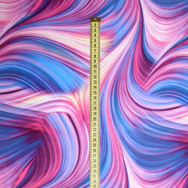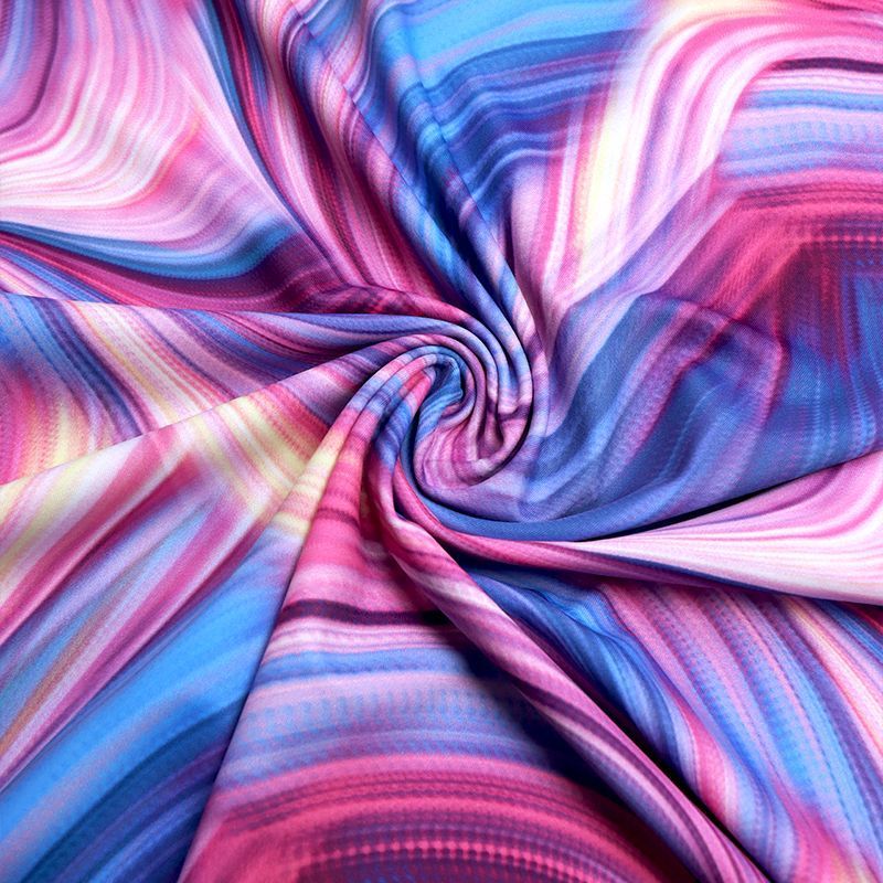 Эта ткань создана для тех, кто знает цену движению. Высокая плотность полотна, эластичность во всех направлениях, мягкость и упругая структура — всё это делает трикотажное полотно на основе полиэстера и эластана настоящей находкой для пошива купальников, костюмов, леггинсов, а иногда и цельных сценических нарядов. Благодаря сочетанию плотной посадки и ярких принтов ткань не просвечивает, даже в растянутом виде, оставаясь визуально целостной. Это особенно важно при работе с крупными узорами, клеткой, полосками и абстрактными мотивами, где требуется чёткая геометрия. Кроме того, Friedman отлично справляется с изгибами и объёмами: материал не деформируется, не даёт пузырей, не искажает пропорции изделия.
