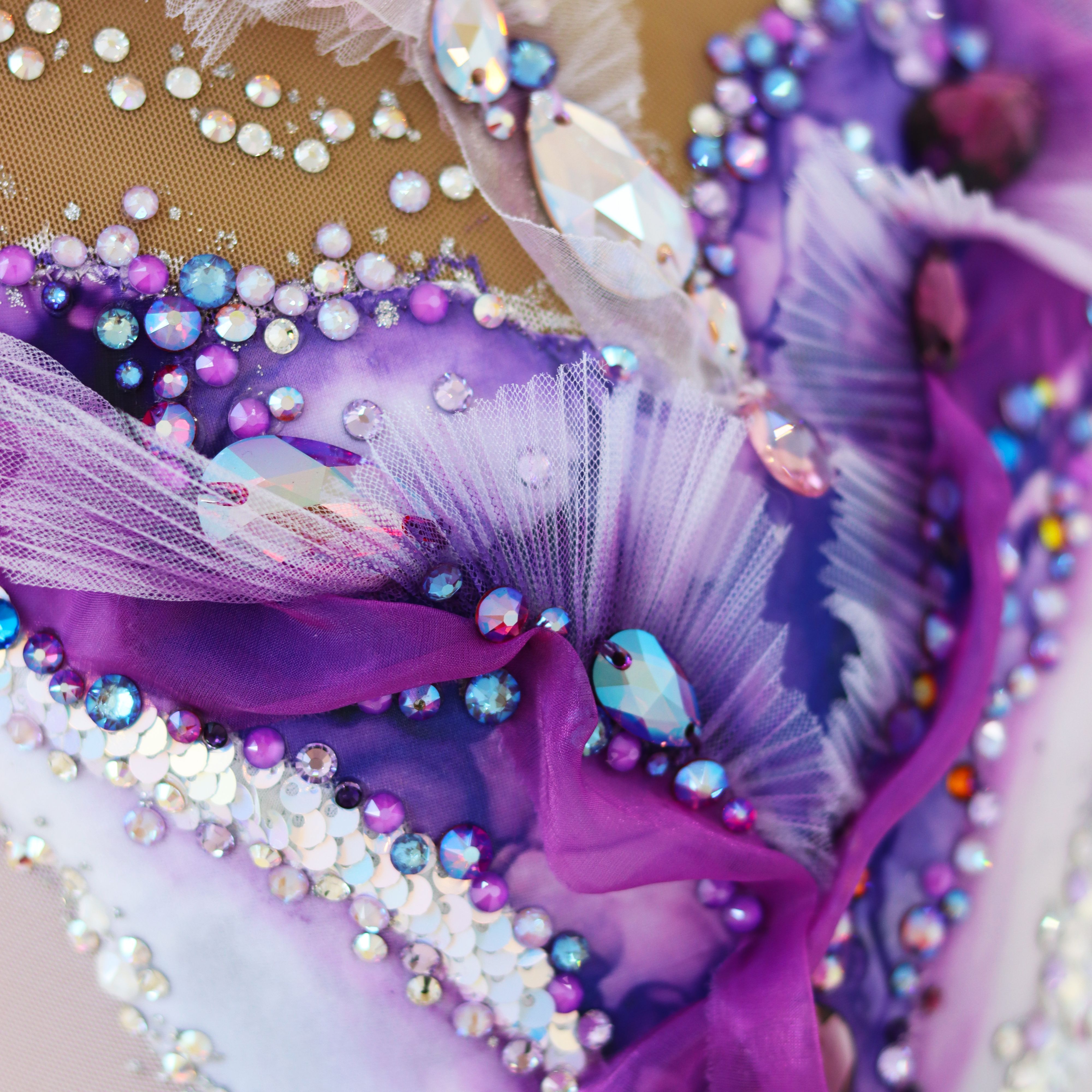 Лейтмотивом работы «Breath of love» является цвет. Удивительные, завораживающие оттенки фиолетового, лавандового, сиреневого… Грани этих невероятных, космических оттенков раскрываются особенно ярко в сочетании с красотой и глубиной кристаллов .evoli