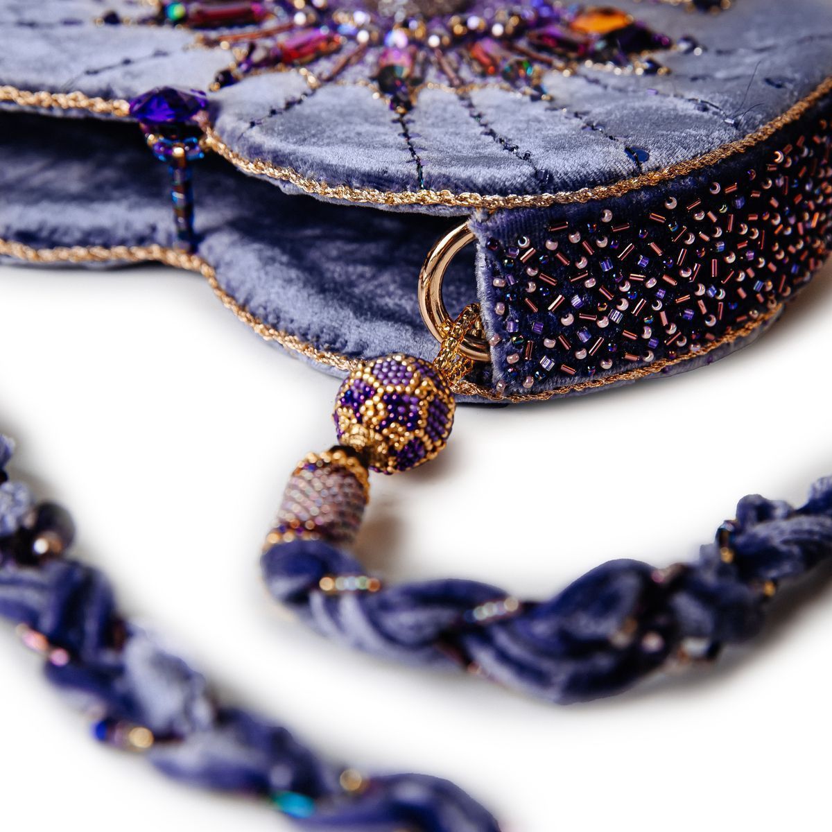 В сумочке «.evoli в моём сердце» кристаллы от .evoli собрались в один благоухающий цветок, который расцвёл на бархатном сердце, чтобы донести все нюансы цветовых оттенков лавандовых полей, запахи множества мелких цветочков сирени и тепло сказочного благоухания роз.