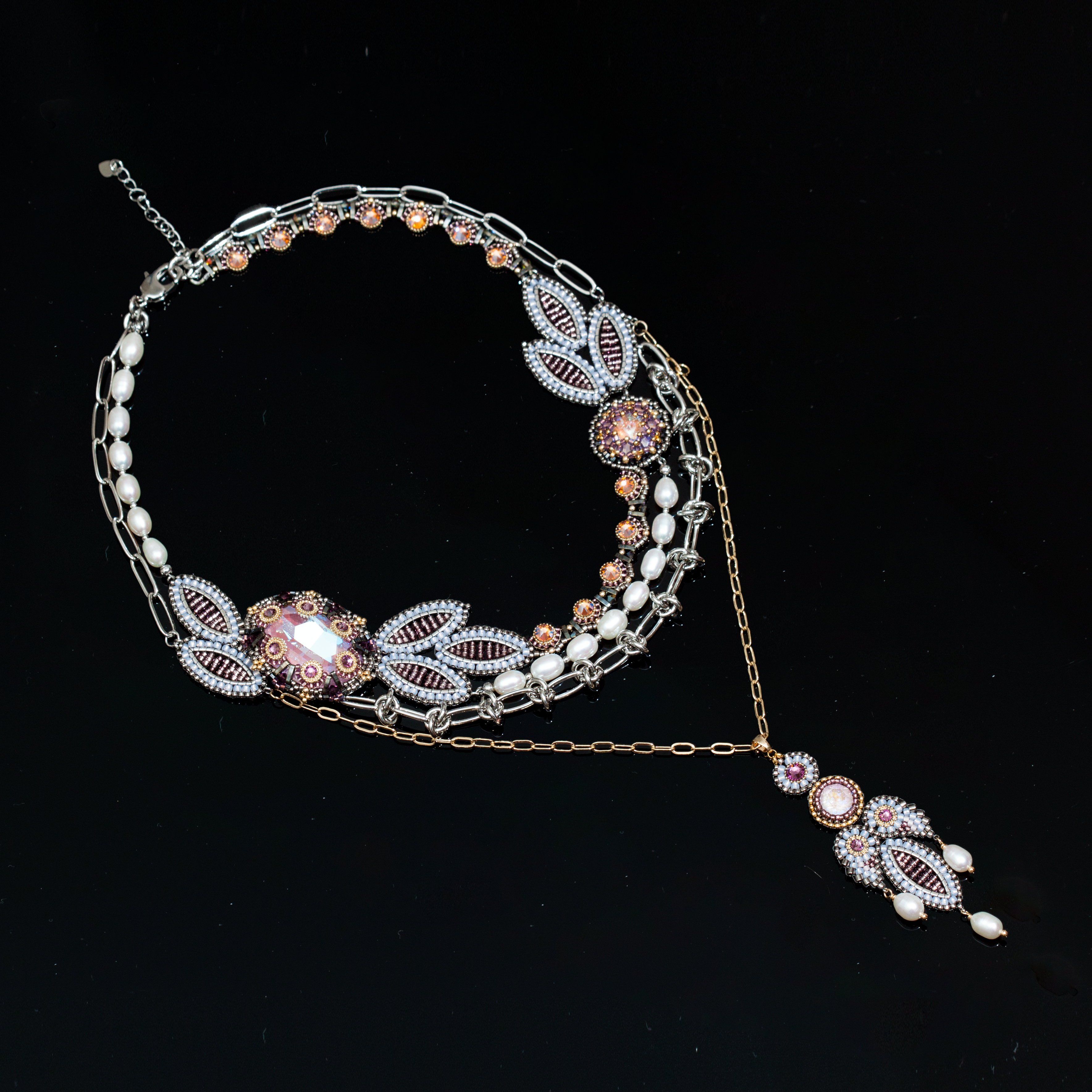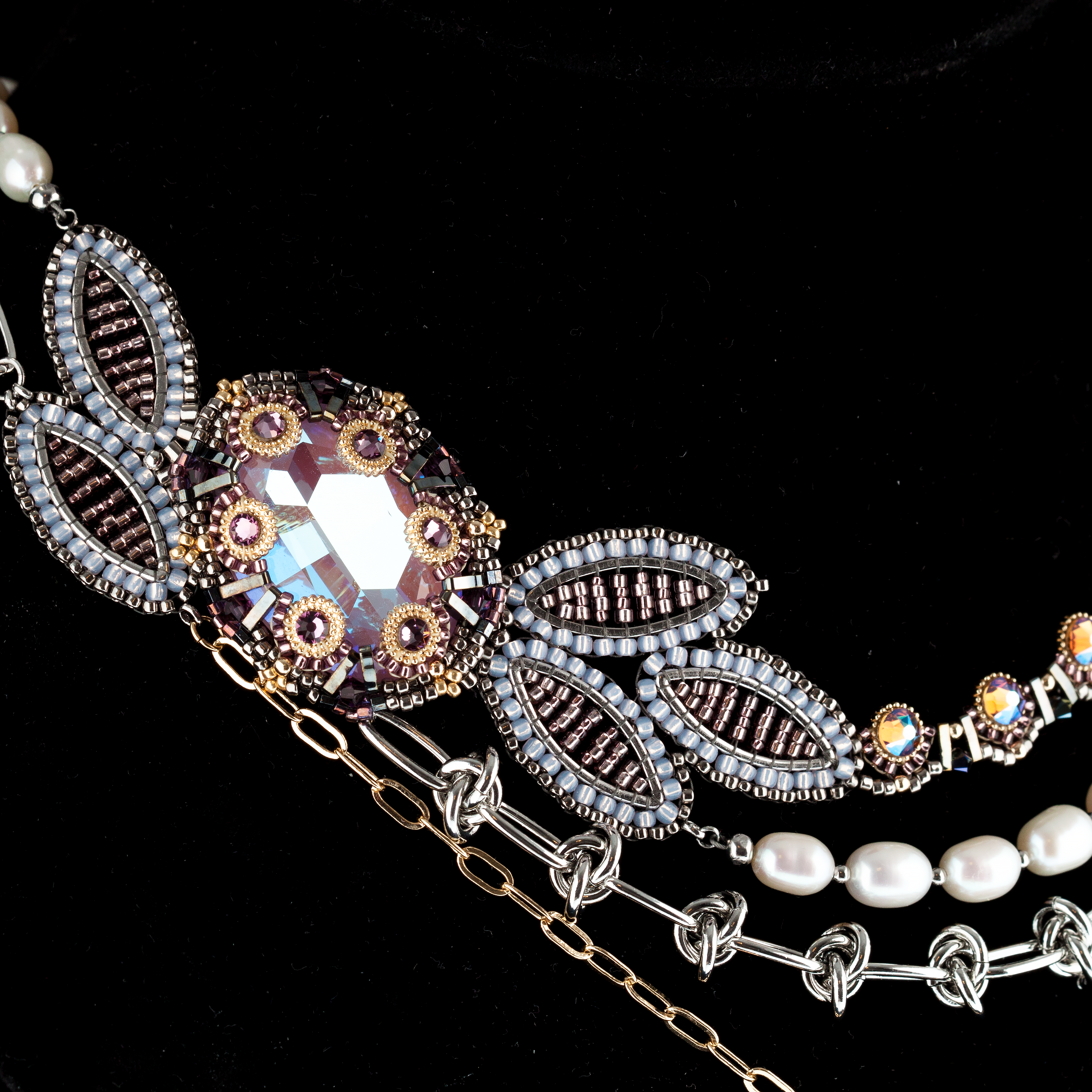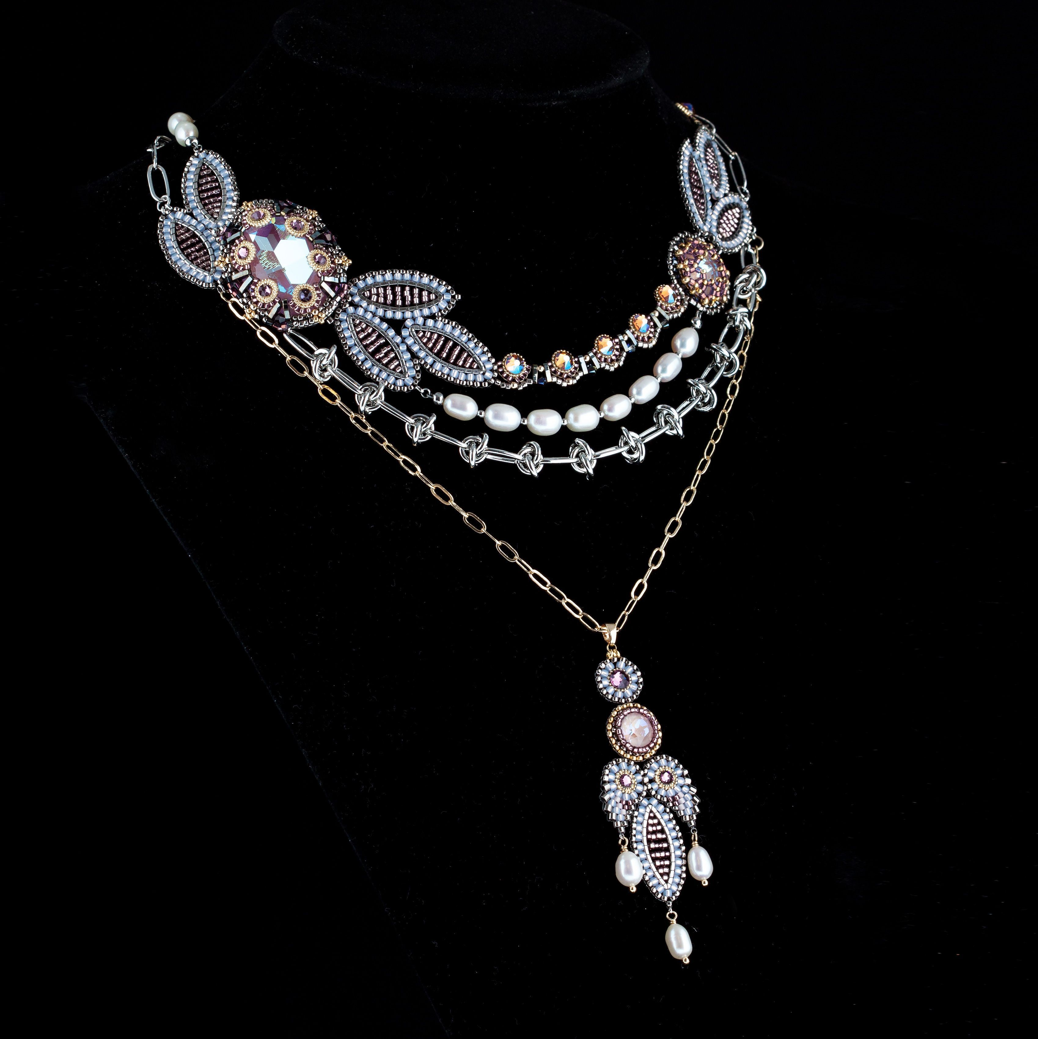 Сегодня она освещает мою дорогу к рубежам Вселенной Эволи. В дар преподношу ей это колье с ослепительными кристаллами в обрамлении лавровых ветвей. Сияющее и женственное украшение с продуманным до мелочей дизайном, под стать музе способной вдохновлять мастера декоративно-прикладного искусства.
