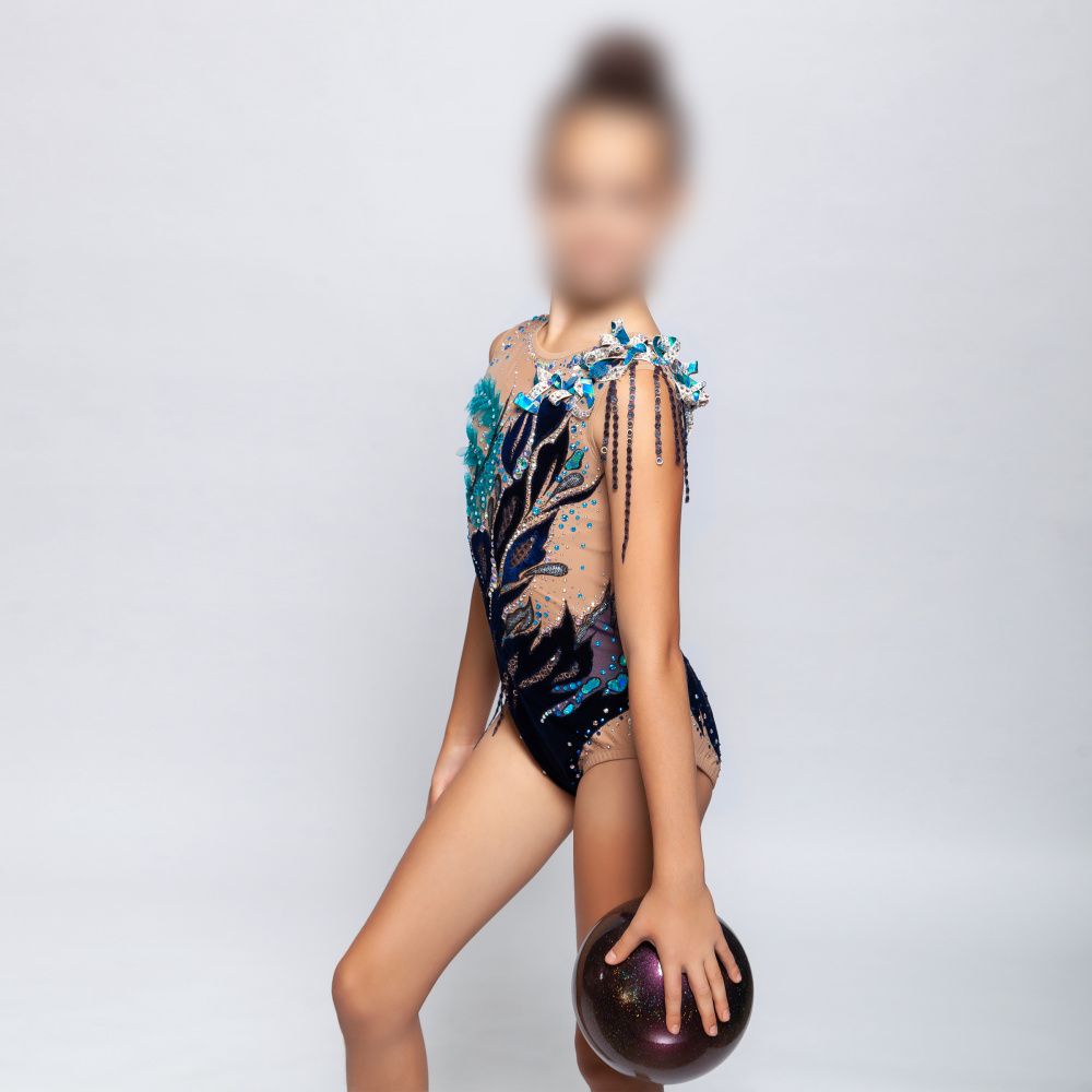 Природа ― самый необъятный источник вдохновения. Она загадочна, бесконечно прекрасна и многогранна. Одно из самых божественных созданий природы, несомненно, женщина. Женщина и природа вторят друг другу. Женщина естественна, свободна как стихия, тиха, как робкий шелест листьев, нежна, как роза. Дизайн купальника для художественной гимнастики воплощает всю многогранность истинной природной женственности. Винил ― один из тех материалов, который совмещает в себе множество достоинств, делающих его уникальным: это эластичность, блеск, прочность и изящность. Аккуратно приютившаяся полосочка винила на плече олицетворяет ленту мёбиуса, простейшую, но при этом неориентируемую поверхность, показывает такую простую, но сложную красоту, придает объем и фактурность купальнику. А аккуратно разбросанные кристаллы Swarovski, словно капли теплого дождя, устало отдыхают после жестокой бури на раскинувшихся молодых и свежих листьях.