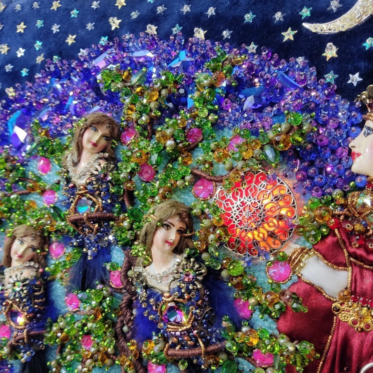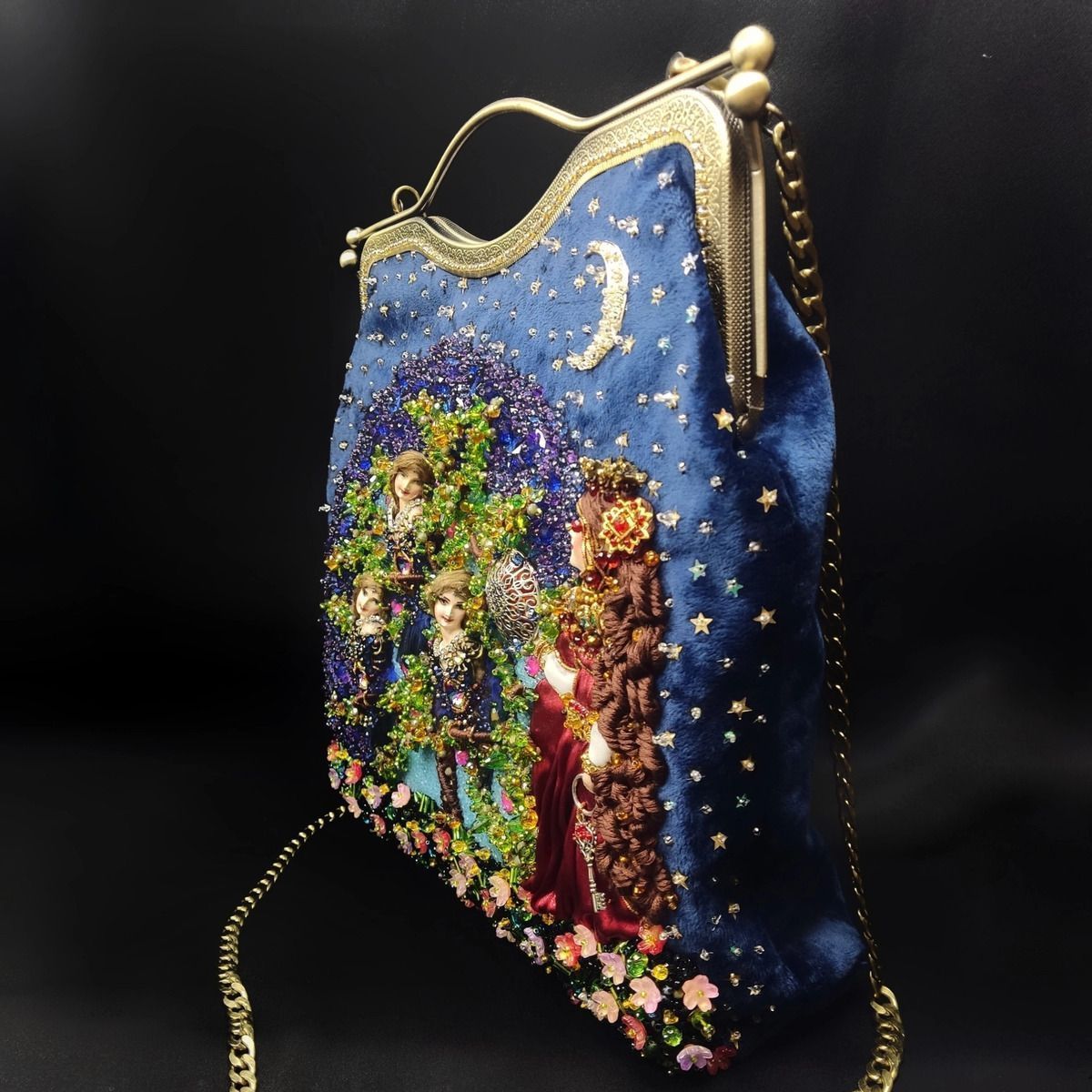 Хотелось изобразить объёмную вышитую "иллюстрацию". Сумочка имеет блок питания и подсветку портала и лампы для ещё большей сказочности, праздничное настроение гарантировано. Увесистая 900 грамм.