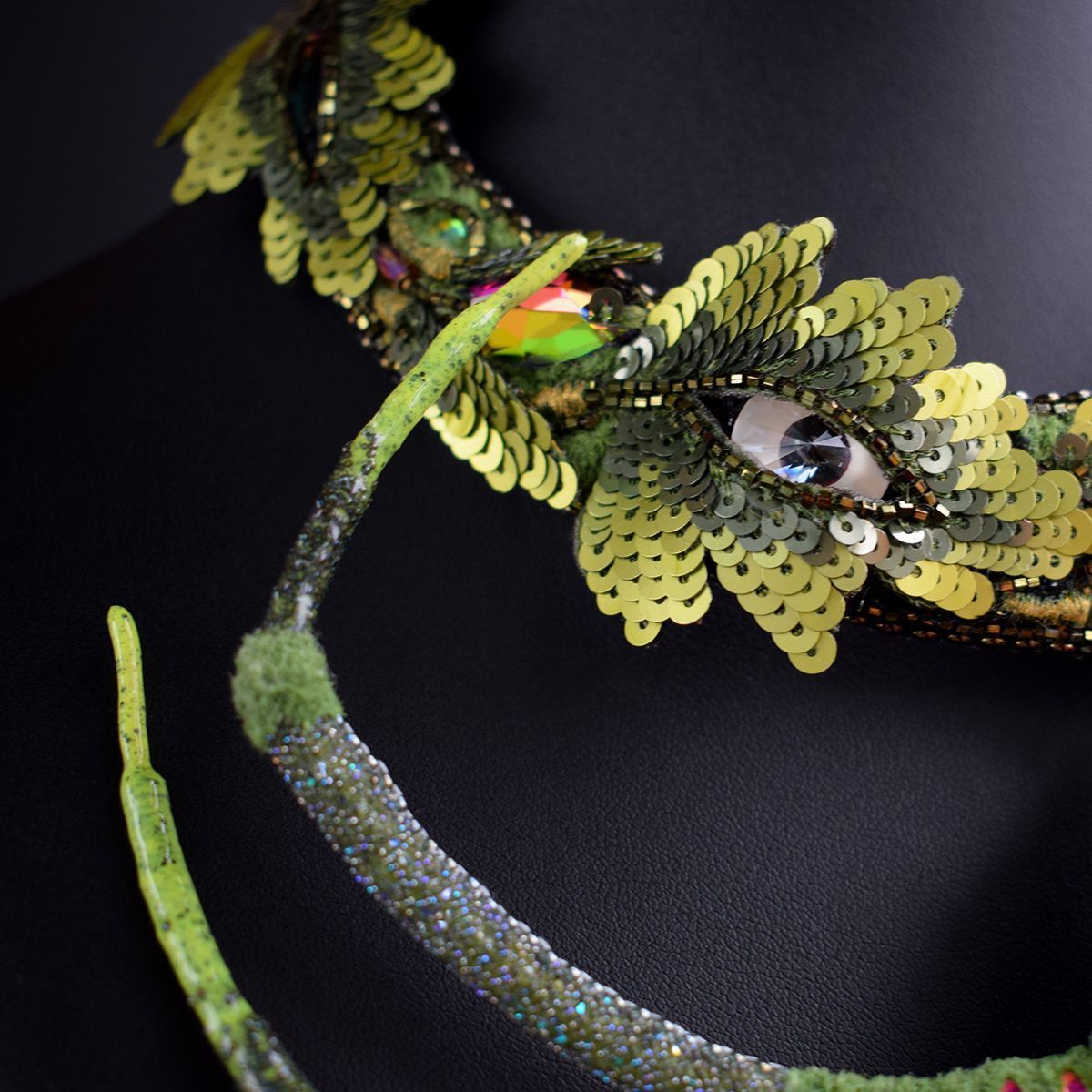 Колье, обвитое листвой, становится не просто украшением, а символом связи двух миров.