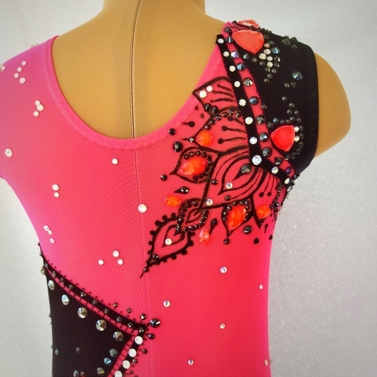 Одной из наиболее ярких и отличительных традиций Индии является искусство росписи по телу Мехенди. История этого украшения исходит от Древней Индии и до наших времен и стало популярно и в других странах. Рисунки вдохновляют художников, дизайнеров модельеров. Они несут не только декоративную функцию, но и применяются в качестве талисманов, имею глубокий особый смысл. Создавая купальник для художественной гимнастики с элементами мехенди, уверена, что  они наделят спортсмена особой силой, принесут удачу и украсят выступление.
