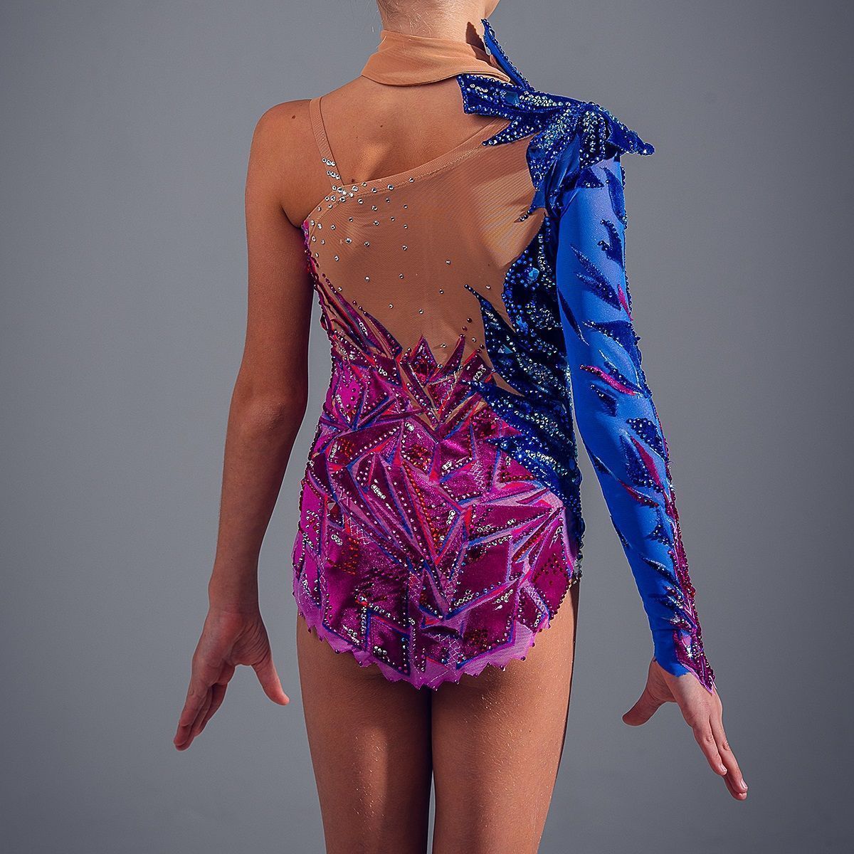 Источником вдохновения для создания данной изделия послужило переплетение образов райской птицы «Сирин», и образа древнего хрустального стеклодувного промысла- стеклоделия. В хрупкости и нестабильности нашего времени, даже при невесомом касании пера может разбиться душа на множество осколков. Но в непредугаданном будущем, через калейдоскоп «острого кружева» родится новая, светлая, чистая душа. Цветовое сочетание изделия выполнено исходя из исконных оттенков образа птицы «Сирин»-(синего и бордового), с учетом модных тенденций в цвете. А также, были учтены такие критерии, как: образ спортсмена, возраст и актуальность атмосфере зала для соревнований.