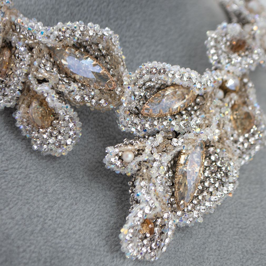 Каждое соцветие этого создано вручную в технике бисерного плетения: не просто украшение, а настоящая симфония объёма.